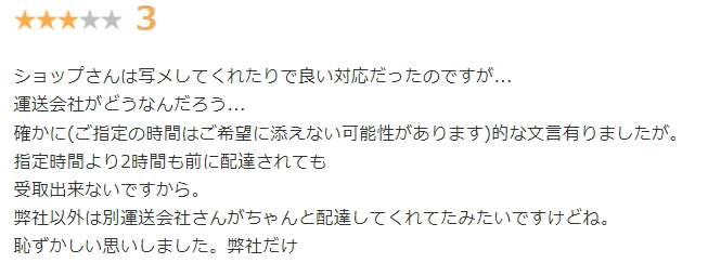 弊社以外は別運送会社さんがちゃんと配達してくれてたみたいですけどね。