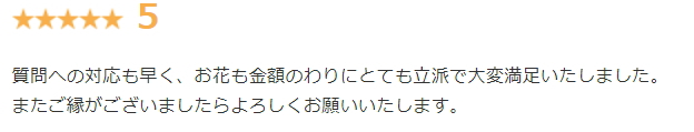 質問への対応も早く、お花も金額のわりにとても立派で大変満足いたしました。